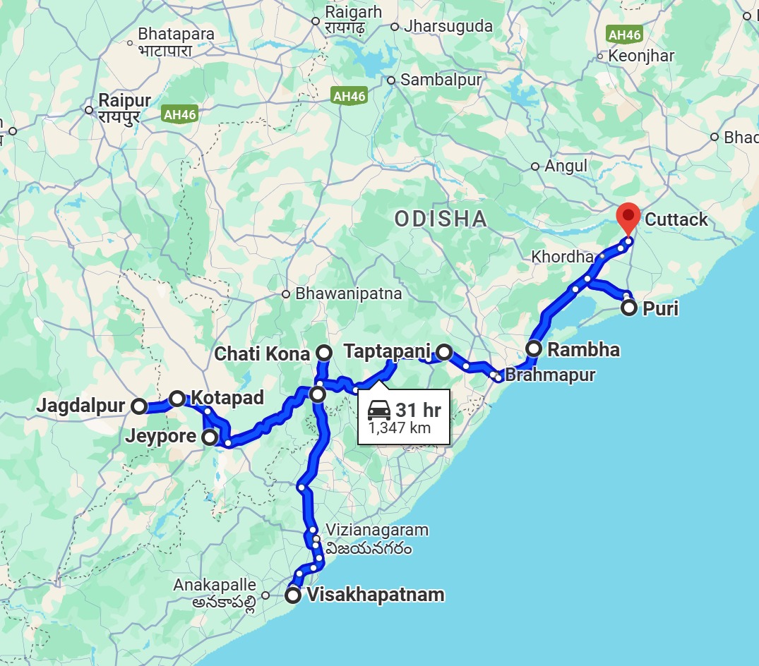 Koraput Jagannath Temple in the morning, then travel to Rayagada, stopping