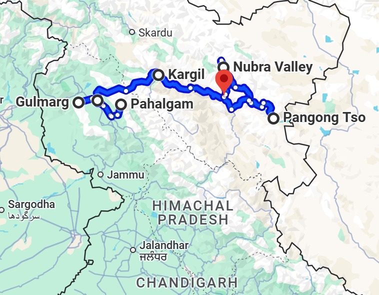 roughly 203 kilometres from Srinagar, and the route runs along the Indus River