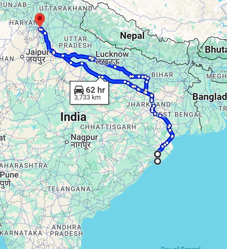 considerable distance to Puri in a luxurious car as the twilight grows darker.