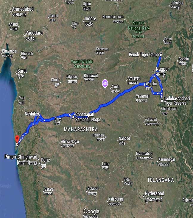 Tadoba Tiger Reserve and Pench National Park offer wildlife game safaris.